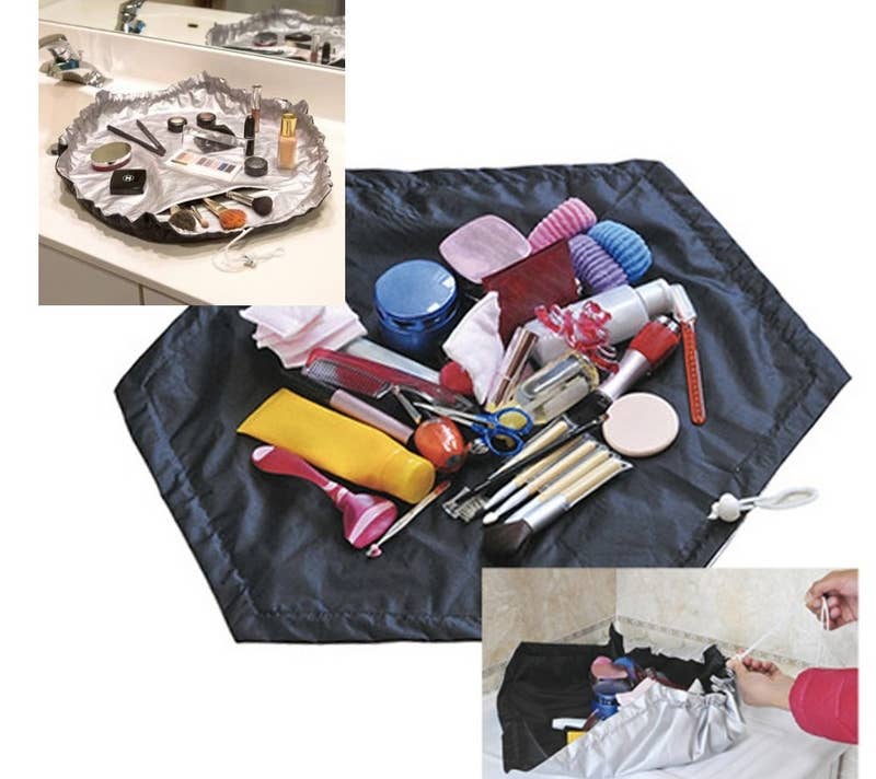 Oh my gosh! So you dont have to go rooting in a tiny bag pulling out item after item looking for one certain color. Spread it out & then cinch it back up - GENIUS!